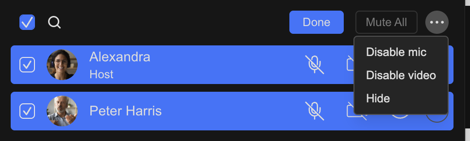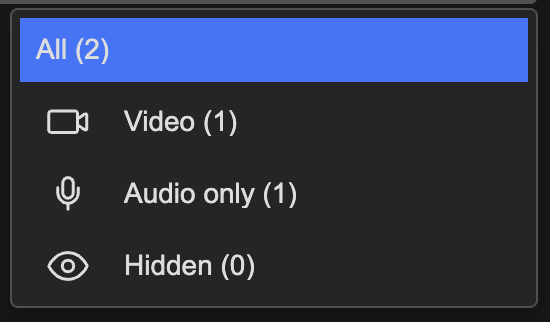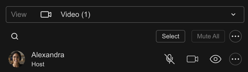 By clicking any of these options, the participant(s) will automatically filter by your selection. For example, when choosing Video, only participants actively using their camera will be visible.