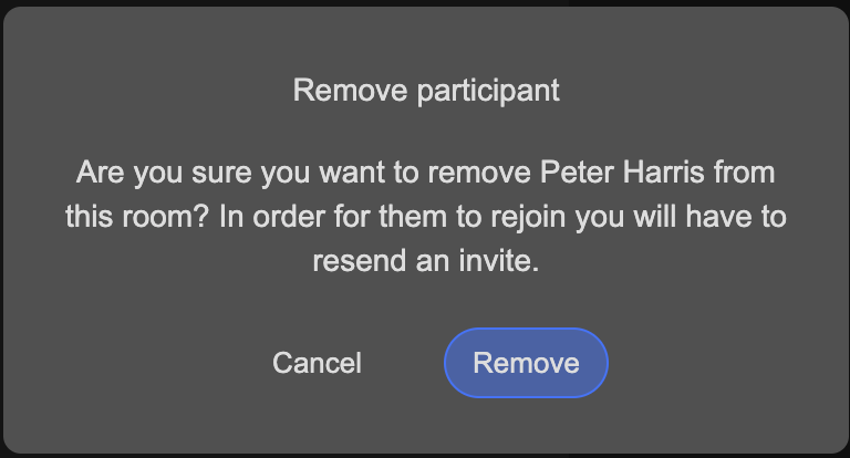 - Select Remove. You will then be prompted to Cancel or continue to Remove the participant.