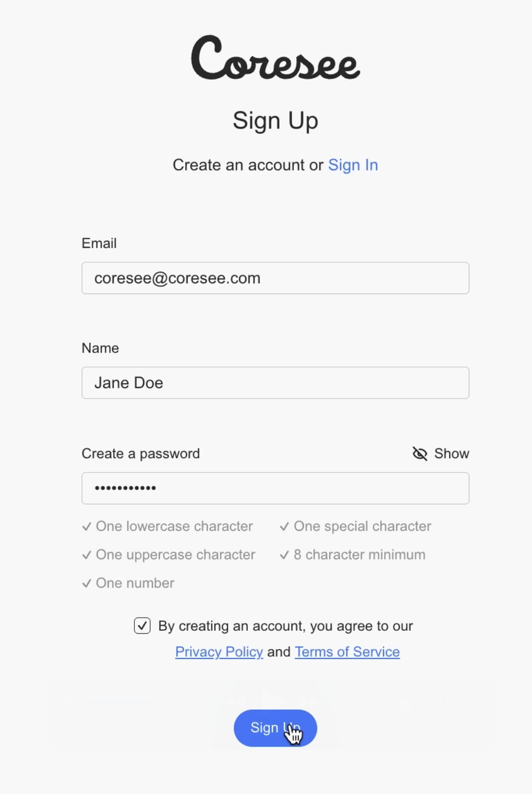 Create a Coresee Account