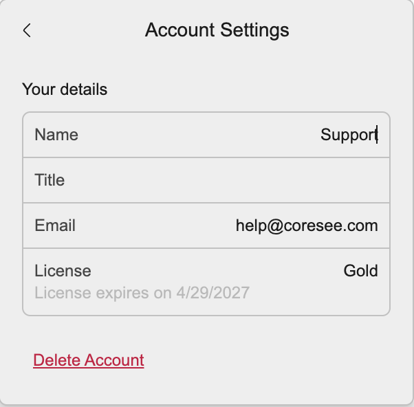 NOTE: The email displayed in your account settings is currently not editable. We recommend keeping your email up-to-date to ensure you receive important notifications and updates related to your Coresee account.