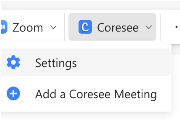 Select Settings from the Coresee dropdown.