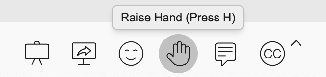 Use Hand Raise to signal to the host that you'd like to make a comment or ask a question. It's a persistent signal — it stays visible until you or the host clears it.