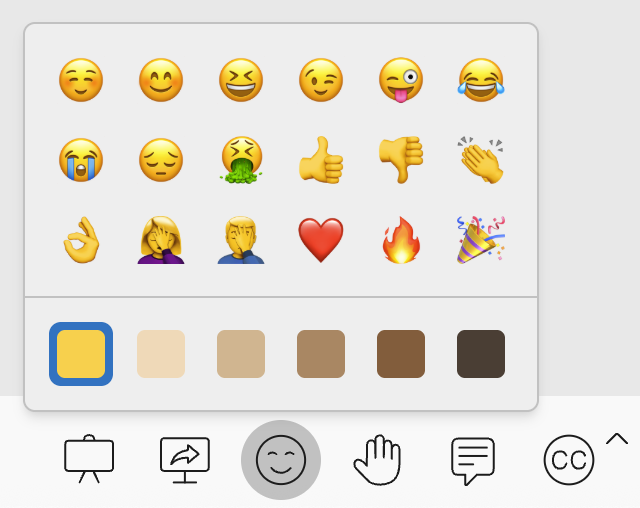 Find the Emoji Reactions button in your session toolbar and click it to open the emoji picker.